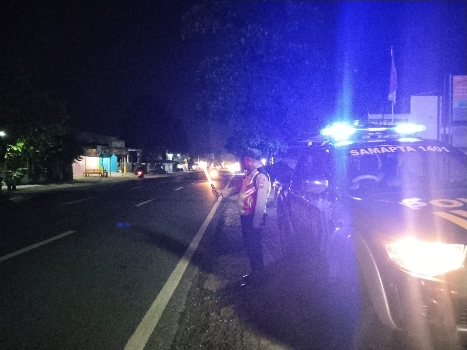 Aipda Okky dan rekan patroli Polsek Jenu Polres Tuban melaksanakan patroli Pantura sekaligus pemantauan arus lalu lintas di beberapa titik rawan tindak pidana jalan di jalan raya di sekitar Pantura.