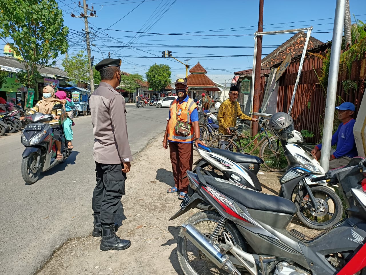 Bhabinkamtibmas Polsek Soko Aiptu Budi H melaksanakan kegiatan sambang kepada tukang parkir yang ada di pasar Desa Sokosari serta berikan himbauan kamtibmas, Kamis(10/6).