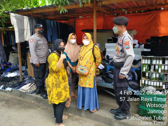 Dalam kegiatan tersebut anggota Polsek Jatirogo Aiptu Dwi Hari P., bersama Aipda Suwignyo mengajak kepada masyarakat untuk selalu mematuhi protokol kesehatan dengan 5M yaitu mencuci tangan, memakai masker, menjaga jarak, menghindari kerumunan dan mengurangi mobilitas, untuk mencegah penyebaran Covid-19. “Kami berharap ditengah Pandemi Covid-19 ini masyarakat mematuhi himbauan pemerintah untuk selalu Disiplin Protokol Kesehatan” Tutur Dwi