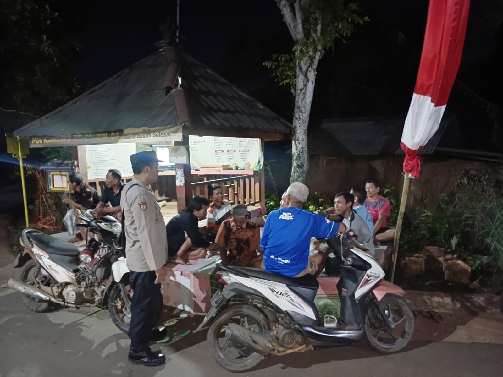 Giat patroli rutin Polsek Tambakboyo Polres Tuban terus berupaya memperkuat sinergi dengan masyarakat dalam menjaga keamanan dan ketertiban lingkungan. Salah satu upaya yang dilakukan adalah sambang ke pos kampling, seperti yang dilaksanakan pada malam (16/09/25) di RT 05 Rw 01 Ds Merkawang Kec Tambakboyo.Dalam kegiatan tersebut, Bripka Mukti bhabinkamtibmas didampingi anggota Unit Binmas Polsek Tambakboyo mengingatkan pentingnya peran masyarakat dalam menjaga keamanan lingkungan. “Pos kamling merupakan garda terdepan dalam menjaga keamanan lingkungan. Oleh karena itu, saya mengajak warga untuk aktif berpartisipasi dalam kegiatan ronda malam,” ujar Bripka Mukti. Selain itu, juga menyampaikan pesan-pesan kamtibmas lainnya, seperti pentingnya menjaga kerukunan antar warga dan menghindari tindakan yang dapat mengganggu ketertiban umum.