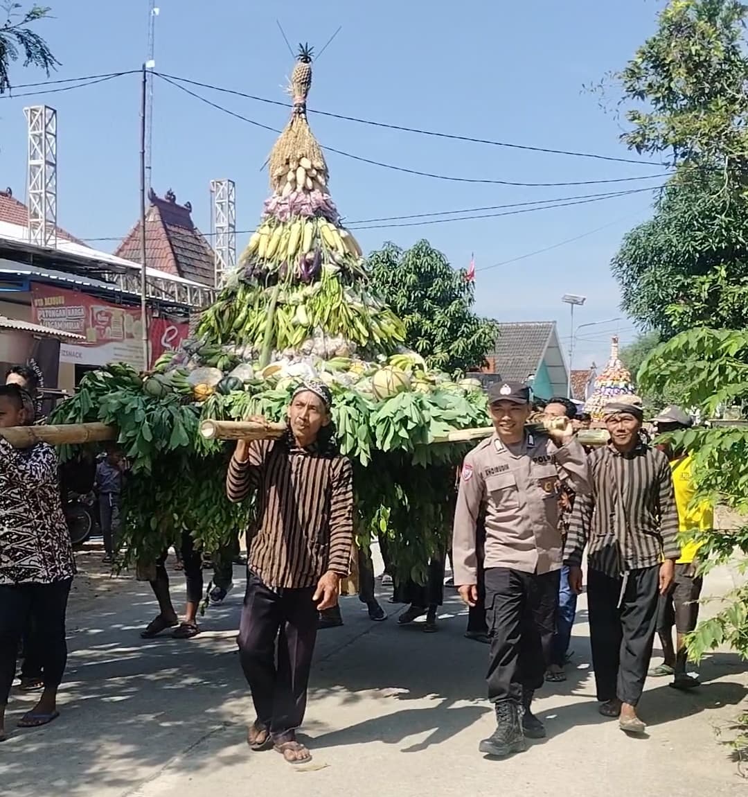 Polsek Senori – Masyarakat Desa Katerban Kecamatan Senori Kabupaten Tuban, menggelar kirab gunungan hasil bumi sebagai bagian dalam rangkaian kegiatan sedekah bumi sebagai wujud syukur atas rejeki melimpah dari Allah SWT melalui bumi yang subur di desa setempat, Kamis (12/6/2025).