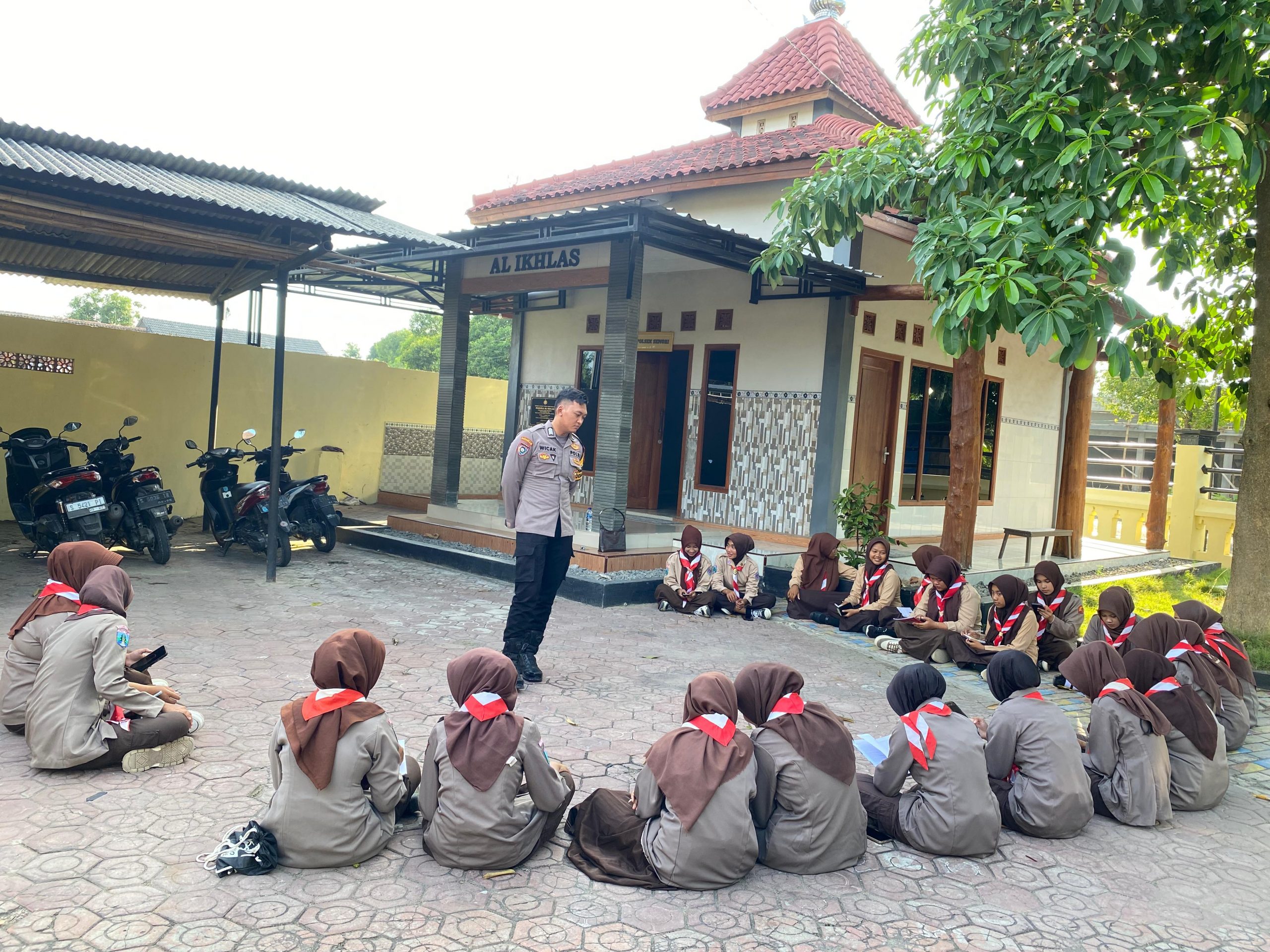 Senori – Anggota Bhabinkamtibmas Polsek Senori Polres Tuban Brigadir Miftahul Aulida Wicaksana memimpin latihan tentang Krida Kamtibmas kepada anggota Pramuka Saka Bhayangkara Polsek Senori yang sedang melaksanakan latihan rutin di halaman Mapolsek Senori, Minggu (2/11/2025) sore.