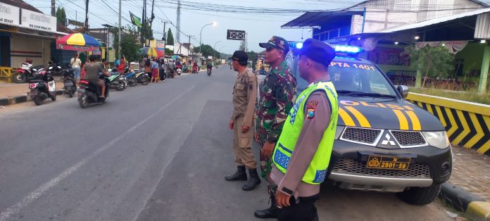 Parengan – Jajaran Polsek Parengan Polres Tuban bersama anggota Koramil 0811/18 Parengan dan Satpol-PP melaksanakan giat patroli ngabuburit di simpang tiga ponco antisipasi laka lantas, Selasa (11/03/2025).