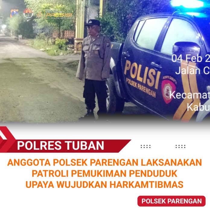 Kapolres Tuban AKBP Oskar Syamsuddin, S.I.K., M.T., melalui Kapolsek Parengan IPTU Muhammad Yusuf, S.H. menerangkan bahwa pelaksanaan patroli pemukiman penduduk untuk cegah gangguan kamtibmas adalah kegiatan rutin yang dilaksananakn oleh anggota Polsek Parengan setiap hari pada waktu siang maupun malam hari. Salah satunya adalah patoli dengan sasaran pemukiman penduduk maupun jalan-jalan yang rawan tindak kriminalitas.