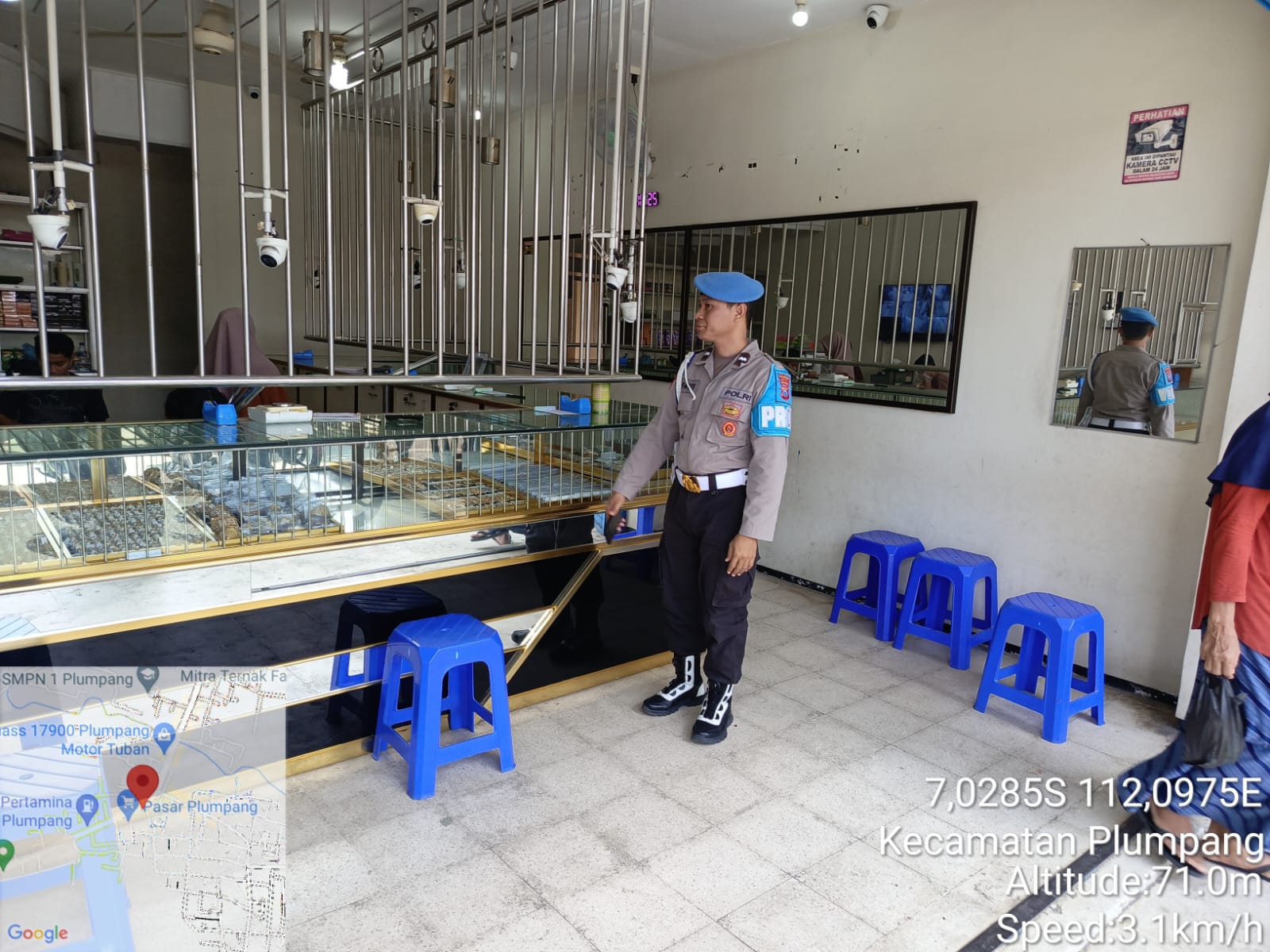 Polsek Plumpang Polres Tuban – Pada hari Selasa (11/3/2025), Anggota Polsek Plumpang mengintensifkan patroli di toko-toko emas yang berada di wilayah Kecamatan Plumpang guna memastikan keamanan dan ketertiban. Patroli ini dilakukan untuk memantau aktivitas masyarakat dan mencegah tindak kriminal yang dapat meresahkan pemilik dan pelanggan toko emas. Petugas polisi berkeliling di sekitar area toko emas dan memastikan tidak ada aktivitas mencurigakan.