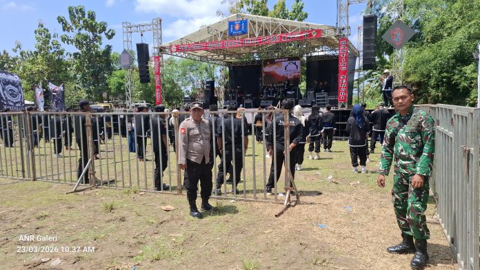 Senori – Soliditas, kebersamaan dan sinergi yang baik itunjukkan oleh anggota gabungan dari TNI, Polri dan Satpol PP Kecamatan Senori. Hal itu terlihat ketika aparat keamanan dari tiga instansi berbeda tersebut melaksanakan pengamanan kegiatan pentas musik dangdut dalam rangka halal bihalal yang diselenggarakan oleh IKS PI Ranting Senori, Senin (23/3/2026) siang.