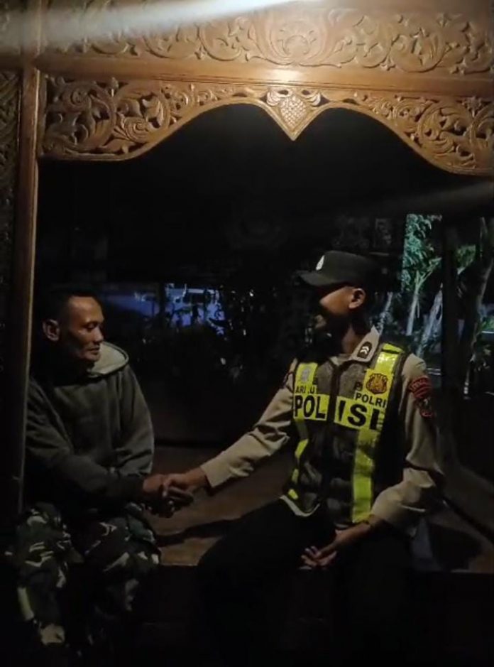 Anggota Polsek Singgahan Polres Tuban kembali melaksanakan kegiatan sambang kamtibmas dengan menyambangi masyarakat yang sedang melaksanakan ronda malam di Pos Kamling, minggu (08/02/2025).