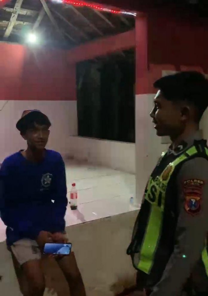 Anggota Polsek Singgahan Polres Tuban kembali melaksanakan kegiatan sambang kamtibmas dengan menyambangi masyarakat yang sedang melaksanakan ronda malam di Pos Kamling, Minggu (12/04/2026).