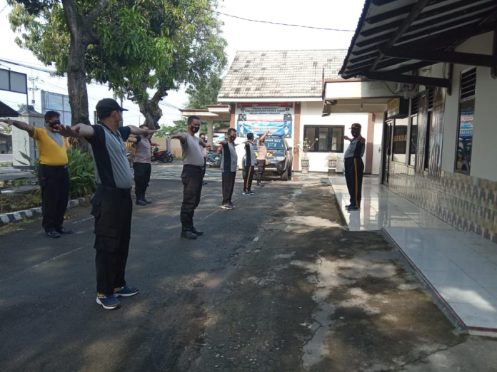 seopini.com-polrestubanpoldajatim hari Jumat, (26/03/2021) pukul 08.00 wib, bertempat di halaman depan mapolsek Tambakboyo , mewakili Kapolsek Tambakboyo Waka Polsek Tambakboyo IPTU Suparto, SH pimpin apel olahraga pagi anggota dengan mengambil jarak merentangkan tangan.