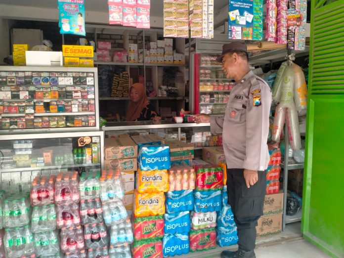 TUBAN, Kenduruan,- Untuk mencegah tindak kejahatan maupun gangguan kamtibmas lainnya, anggota Polsek Kenduruan Polres Tuban melakukan patroli dengan mengambil sasaran pertokoan di pasar, Rabu (18/06/2025).