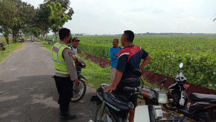 seopini.com-polrestubanpoldajatim Polres Tuban – Kepolisian Polsek Plumpang Polres Tuban Polda Jawa Timur, yang di pimpin Ps. Kasi Humas Aipda Ali Fauzi dan bersama Aipda Hery Sucipto melaksanakan patroli sambang wilayah dan memberikan himbauan serta pesan kamtibmas kepada petani di persawahan Ds. Klotok Kecamatan Plumpang, Kabupaten Tuban. Rabu, (31/03/2021).