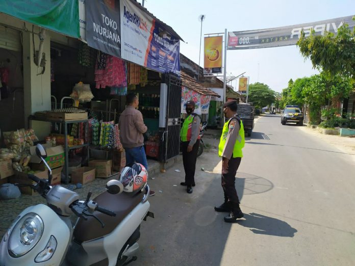 Antisipasi terjadinya gangguan Kamtibmas dan tindak kriminalitas personil Polsek Kenduruan Polres Tuban, melaksanakan patroli pertokoan depan pasar Desa Sidomukti, Sabtu (12/6/2021) pagi.