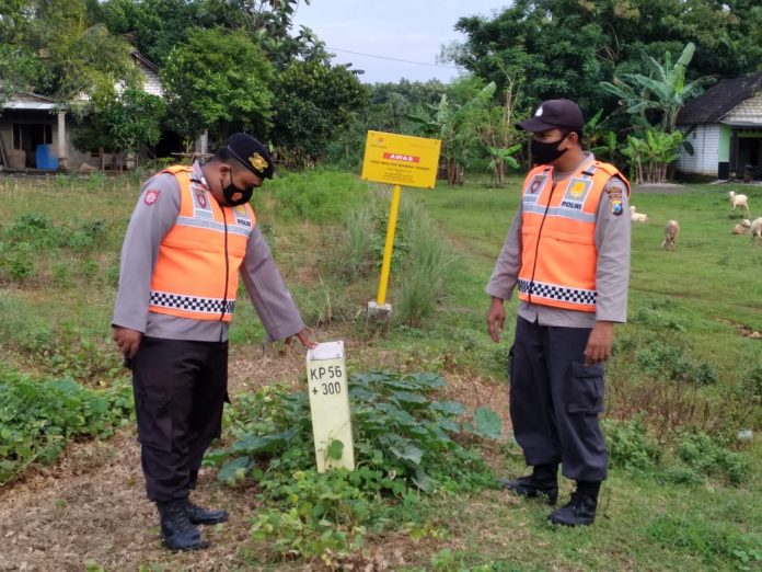 seopini.com-polrestubanpoldajatim Anggota Polsek Plumpang Bripka Purwanto dan Bripka Mirza Yusuf yang tersprin Pam Sus Exson Mobile Pertamina melaksanakan patroli di jalur pipa di wilayah kecamatan plumpang (Kamis, 18/03/2021)