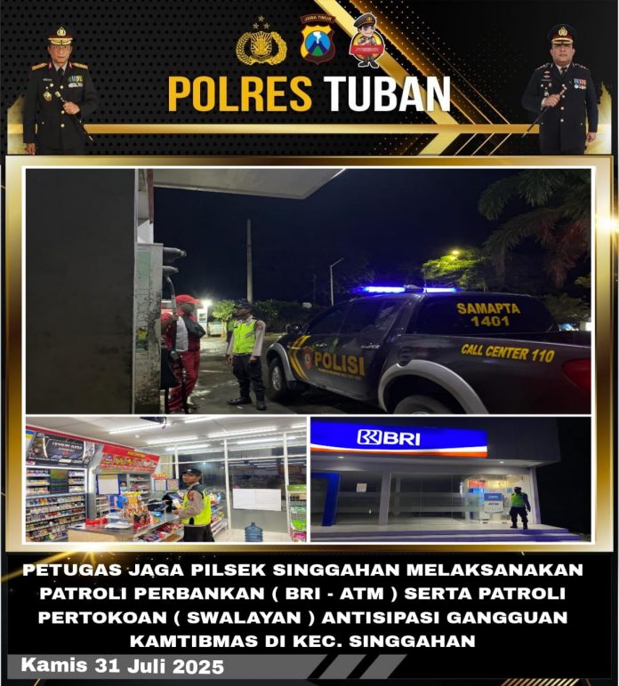 SPBU ini satu-satunya di wilayah Kecamatan Singgahan sehingga cukup ramai ramai, Untuk itu dalam patroli tersebut personil juga menyampaikan pesan kepada petugas SPBU untuk selalu waspada terhadap situasi yang ramai terutama aksi pencurian kepada para konsumen maupun karyawan SPBU sendiri. Jelas Kapolsek Singgahan.