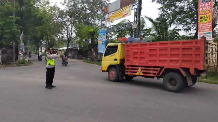 Tampak dalam kegiatan tersebut Bripka Kaswadi, S.H., melaksanakan Giat pengaturan Arus lalu-lintas di Pertigaan jalan raya Jatirogo-Bancar guna mencegah kemacetan serta terjadinya laka lantas.