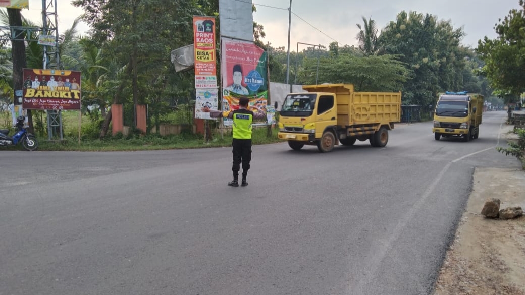 Tampak dalam kegiatan tersebut Bripka Eko Hadi melaksanakan Giat pengaturan Arus lalu-lintas di pertigaan jalan raya Jatirogo-Bancar Kec. Jatirogo guna mencegah kemacetan serta terjadinya laka lantas.