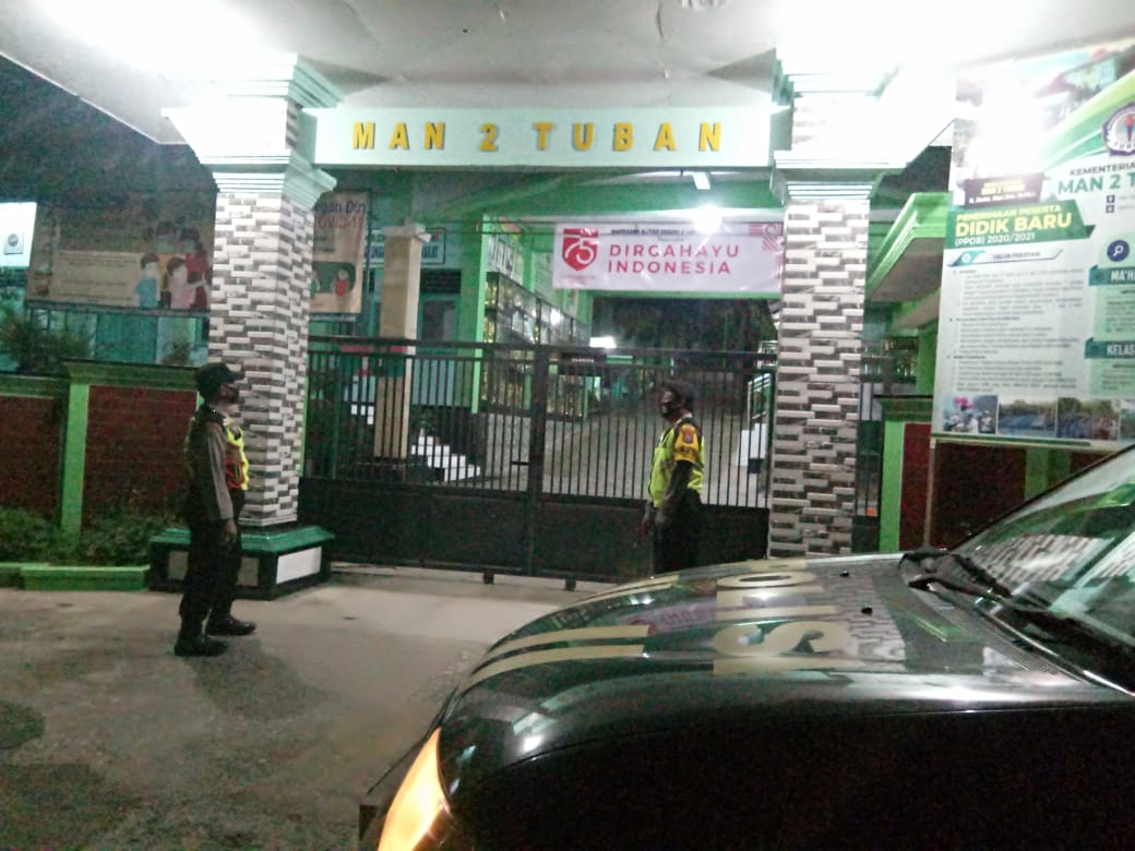 Salah satunya di MAN 2 Tuban, pada kegiatan tersebut petugas mengecek situasi di sekitaran gedung sekolah yang disambangi, memastikan pagar dalam keadaan terkunci guna meminimalisir peluang seseorang untuk berbuat kejahatan.