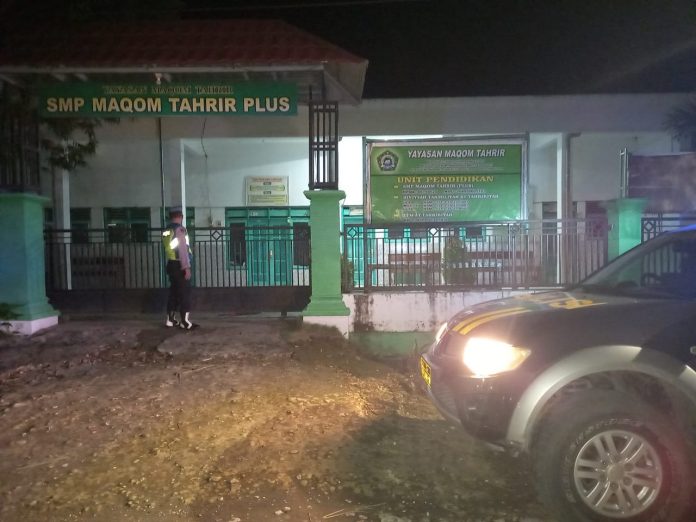 Salah satunya di Gedung Sekolah SMP Plus Maqom Tahrir, pada kegiatan tersebut petugas mengecek situasi di sekitaran gedung sekolah yang disambangi, memastikan pagar dalam keadaan terkunci guna meminimalisir peluang seseorang untuk berbuat kejahatan.