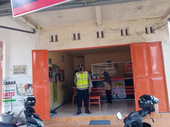 seopini.com-polrestubanpoldajatim Dalam rangka mengantisipasi gangguan Kamtibmas, anggota Polsek Plumpang yang dipimpin Kspk Aiptu Dwi Sampurno bersama anggota melaksanakan patroli sekaligus sambang ke kantor pos yang berada di Desa Sumurjalak Kecamatan Plumpang. kamis, (18/03/2021).