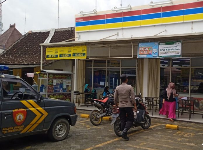 Senori – Dua anggota piket Polsek Senori Polres Tuban Polda Jatim Bripka Putut Aris SB dan Bripda Rifki Syahroni melaksanakan patroli kewilayahan dalam rangka memelihara kamtibmas di minimarket dan tempat-tempat perbelanjaan yang ada di wilayah hukum Polsek Senori.