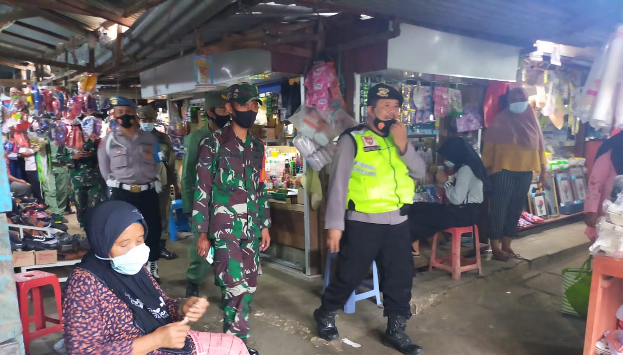 Dengan menggunakan pengeras suara, petugas berjalan kaki menyusuri pasar sembari mengingatkan kepada warga yang beraktifitas untuk tidak lengah serta menerapkan protokol kesehatan, memakai masker dan tidak berkerumun.