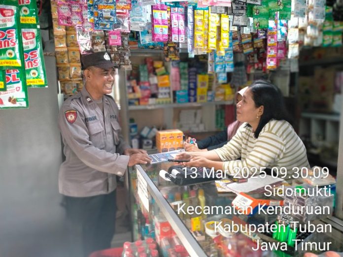 TUBAN, Kenduruan,- Guna memastikan ketersediaan sembako di masyarakat pada bulan Puasa Ramadhan 1446 H, Polsek Kenduruan Polres Tuban melaksanakan pengawasan dan monitoring di pasar Desa Sidomukti dan pertokoan yang ada di Kecamatan Kenduruan, Kamis (13/03/2025).