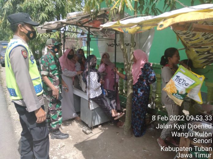 Kali ini yang menjadi sasaran adalah kerumunan ibu-ibu yang berkumpul di halaman sekolah yang berlokasi di Dusun Gayu Desa Wanglu Kulon Kec, Senori. Semua warga yang tidak mentaati protokol kesehatan menjadi sasaran anggota gabungan, Selasa (8/2/2022) siang.