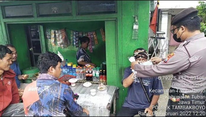 Home Uncategorized Antisipasi Penyebaran Varian Omicron Polsek Tambakboyo Berikan Masker Kepada Masyarakat