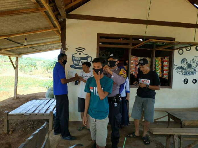 Nampak terlihat petugas giat Yustisi Protokol Kesehatan berada di salah satu warung kopi Desa Jlodro, sekaligus memberikan Himbauan kepada warga masyarakat yang berada diwarung kopi untuk disiplin menerapkan Protokol Kesehatan utamanya memakai masker.