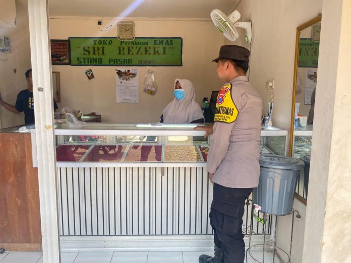 Senori – Ada sekitar empat (4) toko emas di dalam area pasar tradisional Desa Jatisari Kec, Senori. Lokasi 4 toko Emas tersebut menyebar di beberapa sudut pasar. Oleh karenanya setiap hari Polsek Senori Polres Tuban menjadikan toko emas itu menjadi target sasaran patroli Kepolisian.