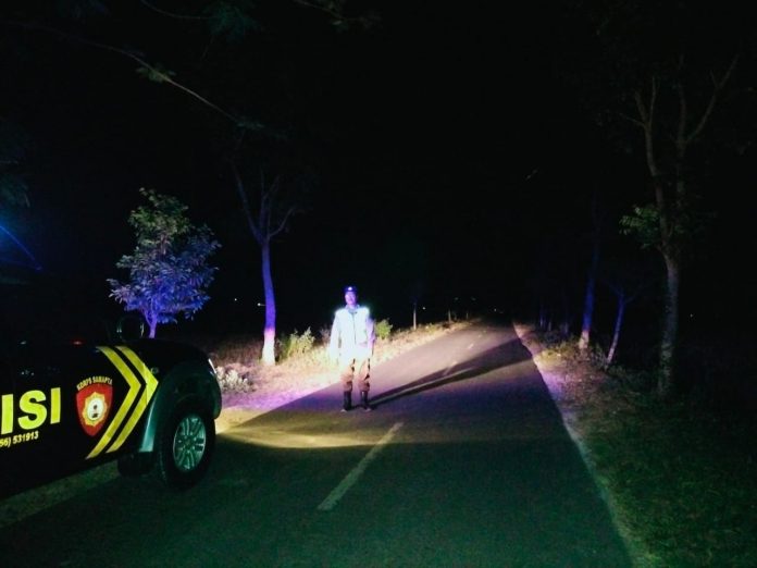 Senori – Menjelang tengah malam, Dua Personil Unit Samapta Polsek Senori Polres Tuban Polda Jawa Timur yang dipimpin oleh Ps, Kanit Samapta Aiptu Ahmadi melaksanakan patroli di jalur perbatasan antara Kecamatan Senori dan Kecamatan Singgahan di Jalan Desa Sendang Kecamatan Senori.