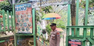 anggota Polsek Singgahan melakukan patroli di tempat wisata air terjun nglirip