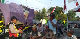 Anggota Polsek Senori Polres Tuban Polda Jatim Berikan Sosialisasi Tertib Berlalu Lintas Kepada Pengemudi Betor