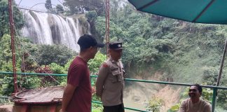Polsek Rengel Polres Tuban Pantau Ketinggian Bengawan Solo Secara Langsung