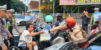 Polres Blitar Kota Edukasi Pengguna Jalan di Operasi Keselamatan Semeru Dengan Berbagi Sayur