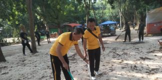 Dukung Program Korve, Kapolsek Kenduruan Polres Tuban Pimpin Bersih-bersih di Obyek Wisata Nganget