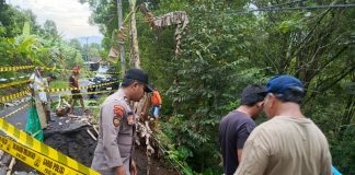 Pasang Police Line Polres Lumajang Tangani Longsor di Tempursari Kendaraan Berat Dilarang Melintas