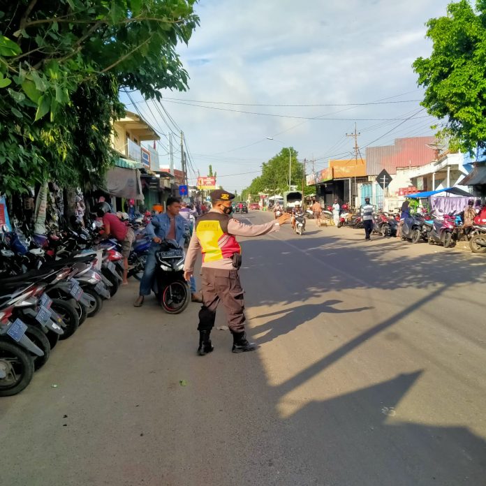 seopini.com-polrestubanpoldajatim Dalam upaya mengantisipasi dan mencegah kemacetan arus lalu lintas Anggota Polsek Plumpang, Polres Tuban Polda Jawa Timur Brigadir Feri Abidin, S.H. melaksanakan pengamanan dan pengaturan lalulintas Di pertigaan kecamatan Plumpang. Senin, (22/03/2021).