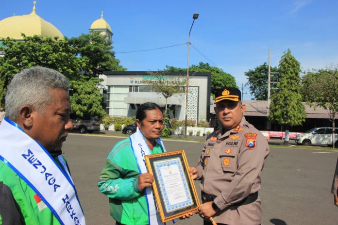 Anggota Polres Tuban dan masyarakat yang menerima penghargaan dari Kapolres