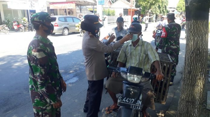 BENTUK UPAYA MENCEGAH PENYEBARAN COVID-19, POLSEK JATIROGO POLRES TUBAN MELAKSANAKAN GIAT YUSTISI PENDISIPLINAN PROTOKOL KESEHATAN SERTA MEMBAGIKAN MASKER