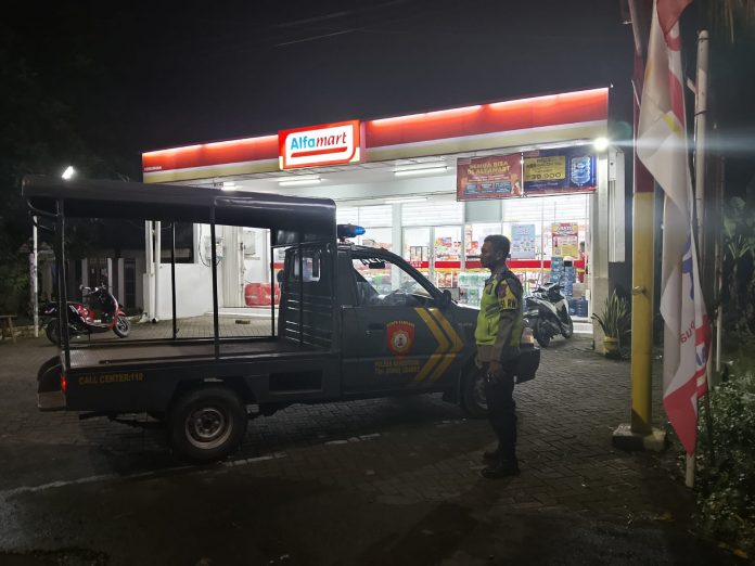 Beri rasa aman kepada karyawan dan pembeli, Polisi Polsek Kenduruan Polres Tuban gelar patroli di alfamart