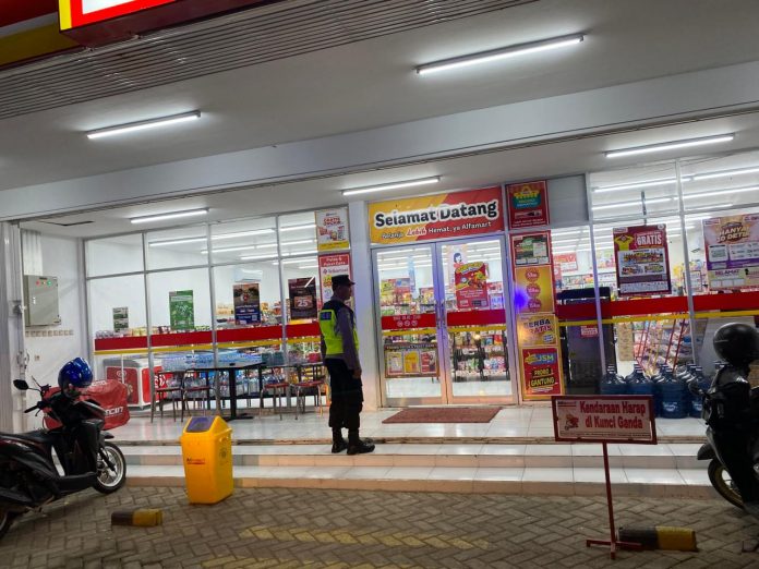 Beri rasa aman kepada karyawan, Polisi Polsek Kenduruan Polres Tuban gelar patroli di alfamart