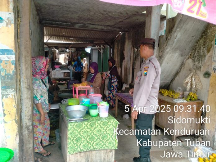 Beri Rasa Aman Pasca Lebaran, Anggota Polsek Kenduruan Polres Tuban Patroli Blusukan di Pasar Desa Sidomukti