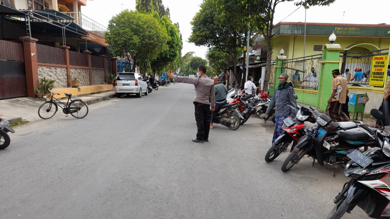 Tampak dalam kegiatan tersebut Waka Polsek Jatirogo IPTU Suhardi didampingi Kanit Binmas BRIPKA Fahrul sedang melaksanakan pengaturan Arus lalu-lintas didepan Masjid Ar-rohmah.