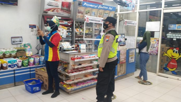 seopini.com – PolresTubanJatim Demi menjaga stabilitas kamtibmas Polsek Jatirogo Polres Tuban melaksanakannya patroli di swalayan retail Indomart berlokasi di jalan raya timur Jatirogo Desa Sugihan Kecamatan Jatirogo Kabupaten Tuban. Rabu malam, (7/4/2021). Dalam kegiatan patroli tersebut KSPKT Polsek Jatirogo Aiptu Dwi Hari P., bersama Bripka Edi Susilo melaksanakan Patroli di Retail Indomart di wilayah Kecamatan Jatirogo, kegiatan tersebut adalah atensi Kapolres Tuban AKBP Ruruh Wicaksono, S.I.K.,S.H.,M.H.