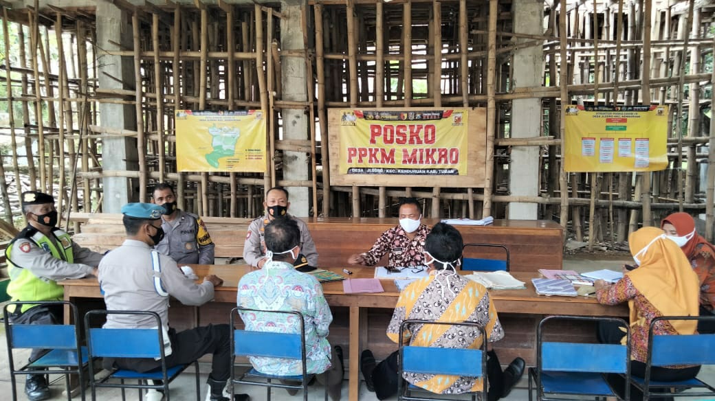 seopini.com – PolresTubanJatim Upaya ciptakan kamtibmas aman kondusif dan cegah persebaran virus corona, Kapolsek Kenduruan AKP Budi Handoyo, S.H., bersama 3 anggota melaksanakan patroli sambang Posko PPKM Mikro Desa Jlodro. Rabu (5/5/2021) siang.
