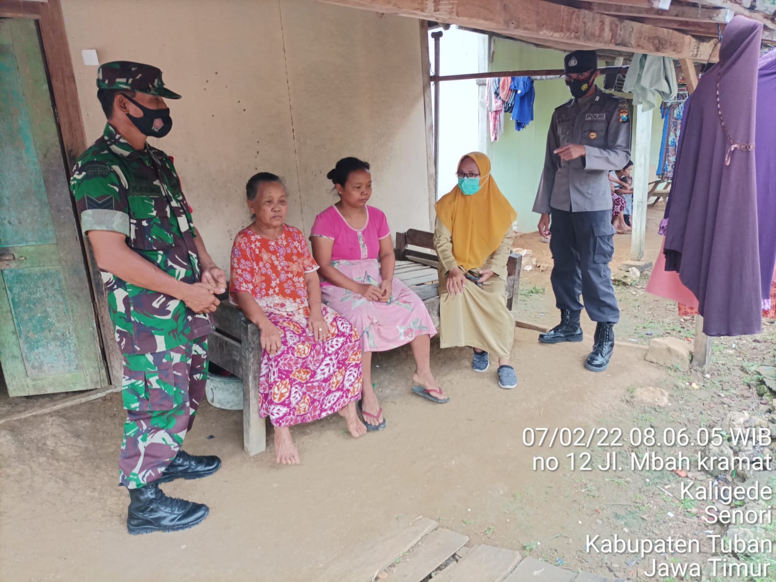 Untuk mendukung program pemerintah tersebut, Aipda Nanang Eka anggota Polsek Senori Polres Tuban Polda Jawa Timur yang bertugas sebagai Bhabinkamtibmas Desa Kaligede bersama Satgas Covid-19 Desa Kaligede melaksanakan kegiatan 3T kepada warga, Senin (7/2/2022) siang.