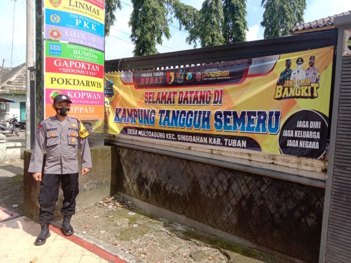 Dalam upaya melakukan pencegahan terhadap Covid-19 terus dilakukan oleh personil Polsek Singgahan Polres Tuban salah satunya melaksanakan patroli secara rutin dengan menyambangi kampung tangguh semeru.