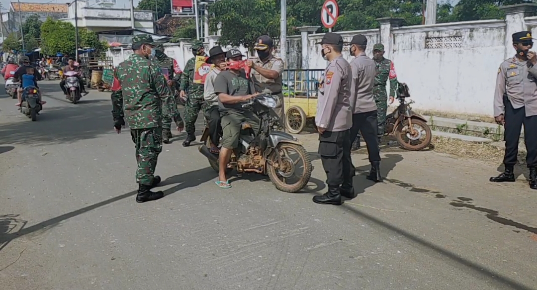 Dalam kegiatan yang dilaksanakan sekitar dua jam tersebut, tim gabungan juga membagikan masker terhadap beberapa orang warga yang tidak menggunakan masker saat beraktivitas di pasar hewan Kecamatan Kerek.