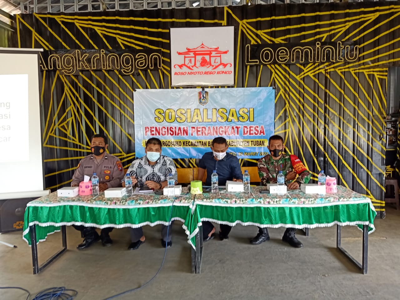 Pada hari Sabtu 20 Maret 2021 pukul 13.00 wib, anggota Bhabinkamtibmas Polsek Bancar menghadiri acara sosialisasi pengisian calon perangkat desa di Desa Margosuko kecamatan Bancar Tuban Jatim.
